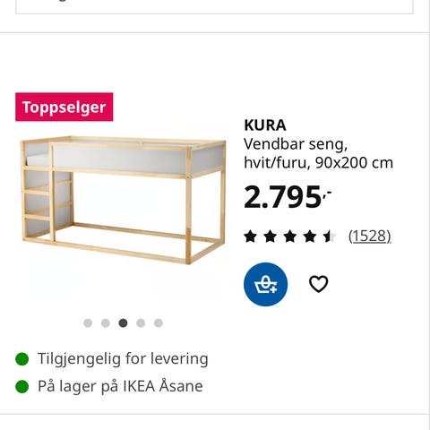 Monteringsanvisning: https://www.ikea.com/no/no/assembly_instructions/kura-vendbar-seng-hvit-furu__AA-514660-12-2.pdf
