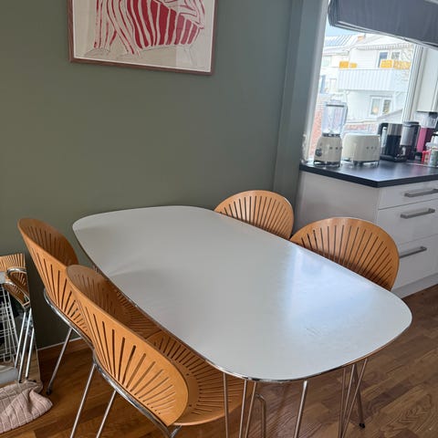 Det er ikke heltre, bordet er lett å rengjøre! Ingen store bruksmerker.