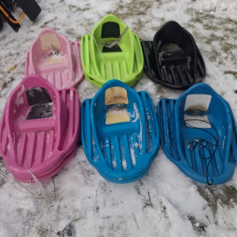 Stiga Cruiser akebrett i svart plastmaterial. Designet for barn med sitteplass og sikkerhetsbelte. Utstyrt med tau for trekking og styring.