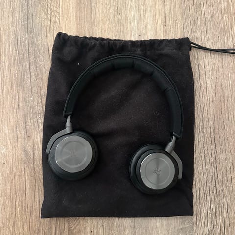 Omtrent ikke brukt. Bang & Olufsen H8 hodetelefoner med over-ear design. Hodetelefonene har en kombinasjon av materialer som inkluderer lær og metall, og er utformet for komfort og lydkvalitet.