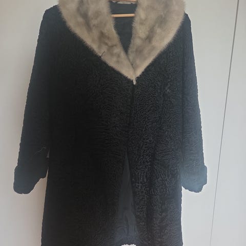 Vintage persianerkåpe m/mink krage.Kåpen er fra Granlund og Paulsen