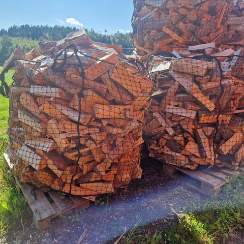 Veden er hogd vinteren 2024/2025 og tørket under pallehetter siden våren 2025.