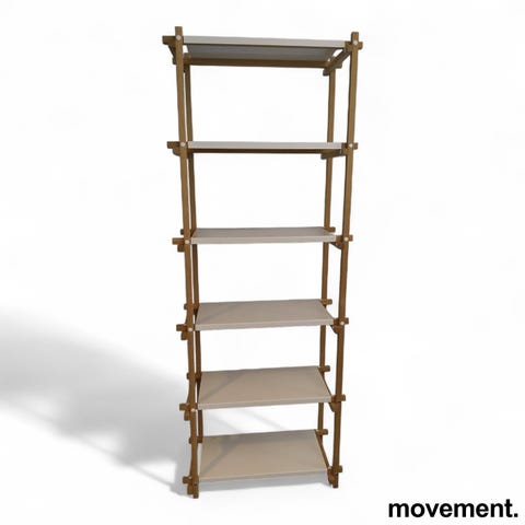 Unik og elegant hylle fra Hay. Ramme i heltre eik og hylleplater i aluminium i fire ulike farger som kan organiseres på forskjellige måter.