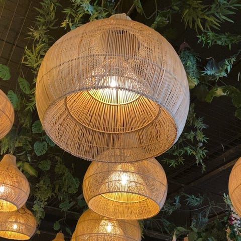 Taklampe pendellampe designerlampe skulptur bambus bomull design statement naturmaterial tekstil dekor stor lampe boligstyling