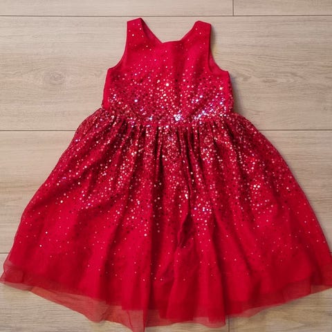 Rød paljettkjole med tyllskjørt str 110