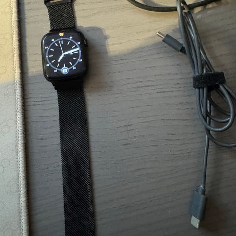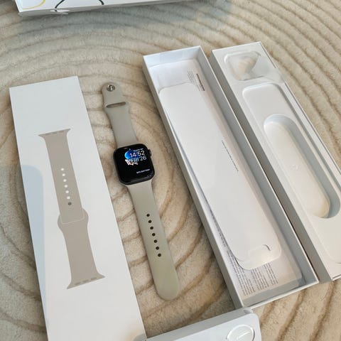 Selger min Apple Watch Series 9 41mm. Pent brukt, ingen synlige bruksmerker. Batterikapasitet: 88%.