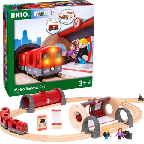 Moderne togsett med fjernstyrt tog som gir en ekstra morsom og interaktiv lekeopplevelse. En favoritt hos barna, og et flott supplement til andre Brio-sett. For mer informasjon: https://www.amazon.co.uk/Brio-RC-Travel-Set-World/dp/B01DNRE6UG