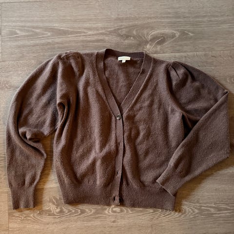 Lang jakke/cardigan med ull og alpakka str 13-14 år.