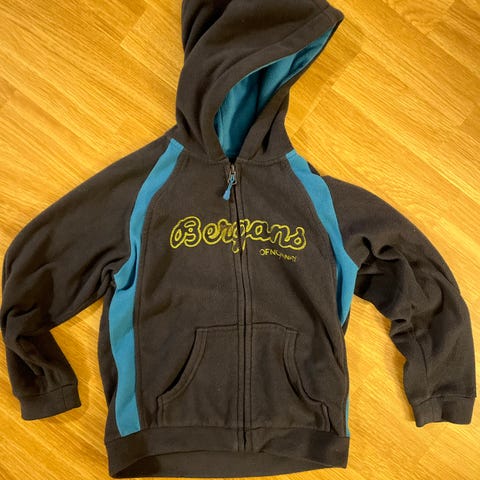 Bergans fleece med glidlås og hette str 6 år - kr 89,-