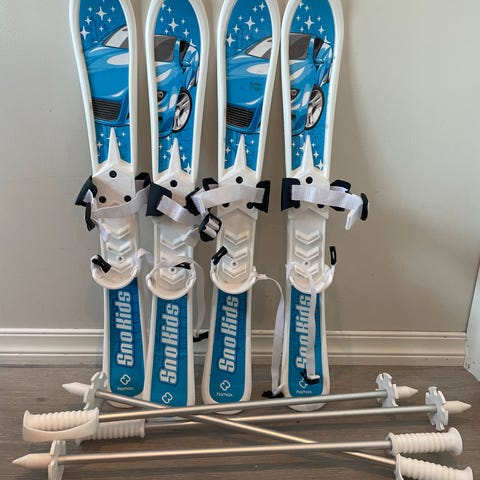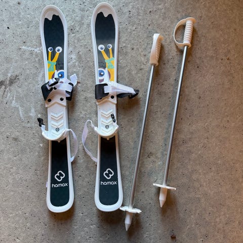 En fantastisk pakke med ski og staver for de yngste barna med flott blått motiv. Skiene har også spor under for bedre grep. Stavene har plastikklemmer istedenfor reimer. Skiene er brede og stabile, og har mønster under som begrenser farten. Den justerbare fotstøtten gjør at skiene passer flere skostørrelser (opptil størrelse 32). Den kan også settes i to ulike posisjoner, med enten løs hæl for bruk på flat mark, eller fast hæl for kjøring nedoverbakke. Lengden på skiene er 65 cm. Passer barn fra 2-5 år.