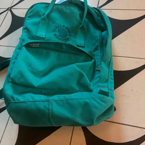 Selger en Kipling-sekk som har blitt glemt i skapet og derfor er ubrukt. Skinnet på bærestroppen har imidlertid blitt sprukket.