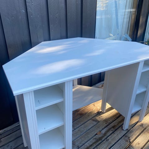 Flott mørk brunt sidebord fra Ikea, passer å ha stående langs armlenet på sofa, midt i et rom, eller langs en vegg. Har selv brukt det langs vegg under TV.