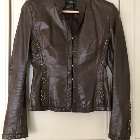Karen Millen Andre jakker skinnjakke i brun farge, størrelse 38. Laget av skinnmateriale, designet for kvinner.