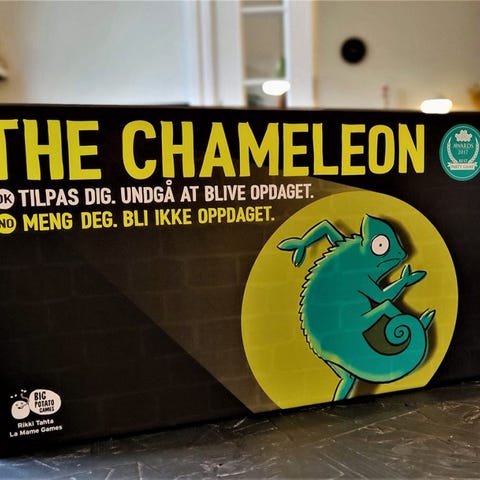 The Chameleon inkluderer kort, spillkomponenter, tusj og terninger. Spilltype for flere spillere, designet for sosialt samspill og underholdning.