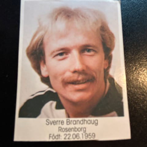Sett med fire fotballkort med autograf som viser Sverre Brandhaug, Karl Petter Løken, Jahn Ivar «Mini»Jakobsen og Gøran Sørloth. Hvert kort inkluderer et bilde av spilleren i Elkem-drakt og deres signaturer eller autografer. Kortene er fra rundt år 1990. Kortene er i svart-hvitt og har et enkelt design med fokus på spillerportrettet.