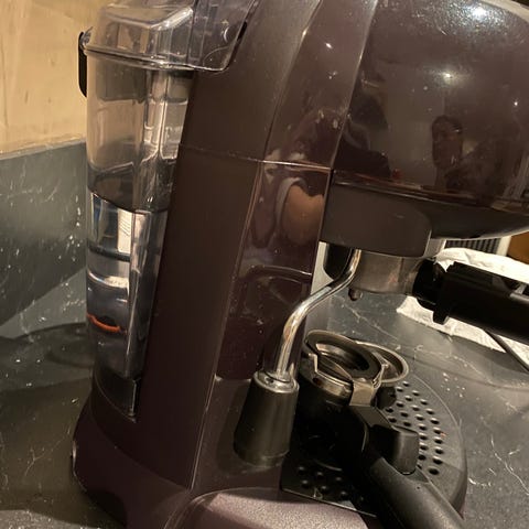 Tar liten plass på kjøkkenbenken og varmes raskt opp. Det følger med 2 portafiltere, 6 ulike filterkurver og en melkeskummer behoder. Det følger med Steamer fungerer fint til melkeskum.