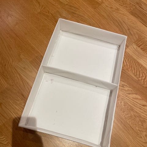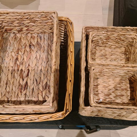 Noe slitt i kanten på en eller to, og stålstaven som holder boksen oppe har kommet ut av stoffet noen steder (se bilde). Det kan lage riper der den står. Hvis de står et sted som ikke kan få riper eller står stille er de helt supre og fine bokser.
