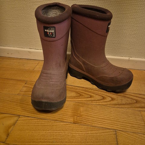 Sett med 3 par sko.Ett par Viking vinterstøvler. To par er regnstøvler. I god stand. Brukt av en 5,5 år gammel jente. Brukt kun i én sesong.