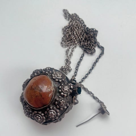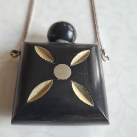 Vintage sølv duftflaske-anheng på et sølv halskjede