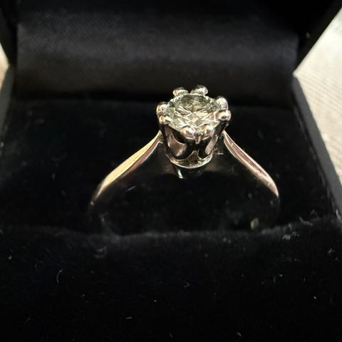 Flott diamantring med 3 diamanter på til sammen 0,60 carat. Størrelse 55.