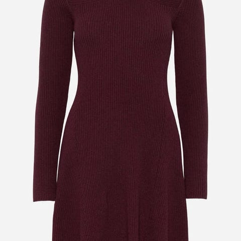 Selger en fin kjole i 100 % merinoull fra Camilla Pihl. Den er ribbesttikket med A form som gjør at den sitter veldig flatterende. Fin burgunderfarge og bare brukt to ganger. Jeg er 165 cm høy og kjolen rekker meg til rett over kneet