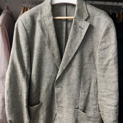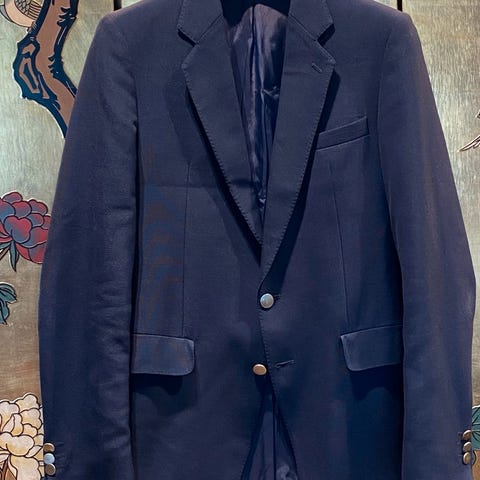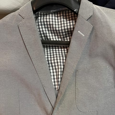 Herreblazer fra Frislid Trend, størrelse 48 (M). Ullblanding med viskosefôr. Svært lite brukt og i veldig fin stand. Ser nesten ny ut. flekk på ermet – reflektert i prisen.