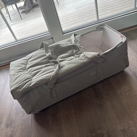 Blitt brukt mest til soving i vårt eie, veldig allsidig og fint bærenest som baby har vært glad i. Får plass i moonboon, bedside crib og vogn (Britax smile 5z).
