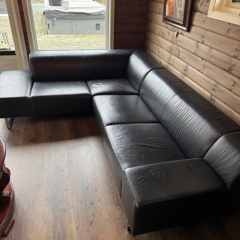 Hel og fin hvit todelt skinnsofa med sjeselong fra Bolia vurderes solgt da vi trenger sovesofa. Trenger nok en rens/vask men ser helt ok ut. Pris kan diskuteres ved kort avgjørelse.