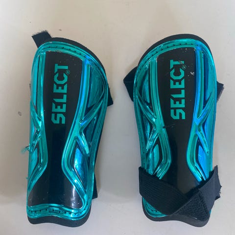 Select High Safe leggbeskyttere i grønn og svart farge. Designet for beskyttelse under sportsaktiviteter, med stropp for feste rundt foten. Materialet er slitesterkt og gir god dekning av leggene. Str. XSS = 6 år.
