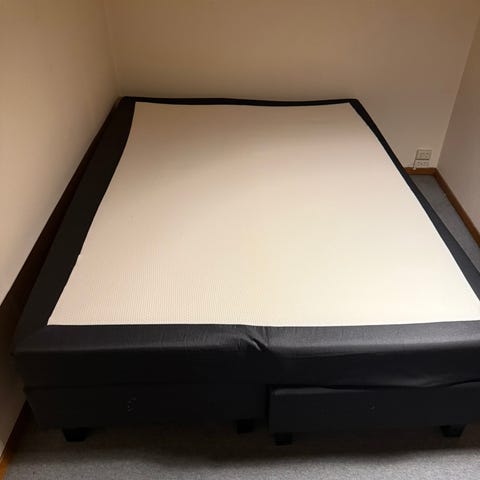 Kommer med hel ramme, en overmadrass og 15 cm høye bein, som gir god høyde og enkel rengjøring under sengen.