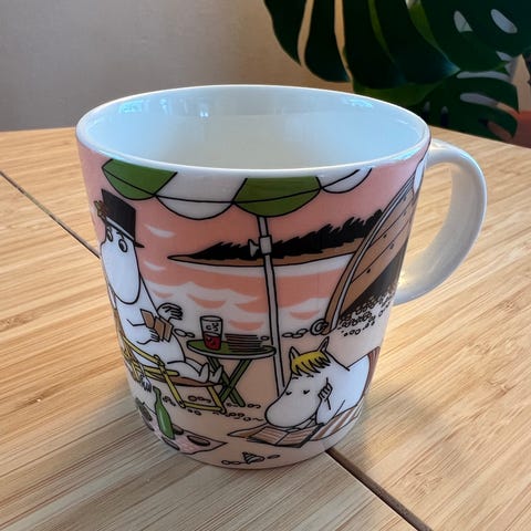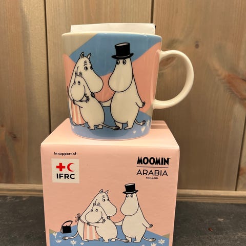 Arabia Moomin kopp i blå keramikk med motiv av Mummitrollet. Koppen er egnet for bruk i oppvaskmaskin og mikrobølgeovn. Designet med karakteristisk Moomin-illustrasjon.