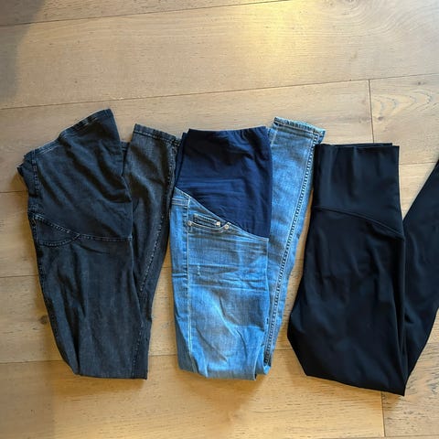 Selger to pent brukte gravidtights, en mørk grå og en svart. Vært svært fornøyd med dem. De sitter godt på både tidlig i graviditeten og på slutten. De er myke og behagelige og ikke noe særlig gjennomsiktige.
