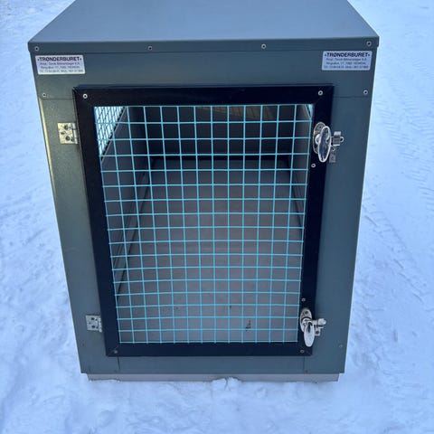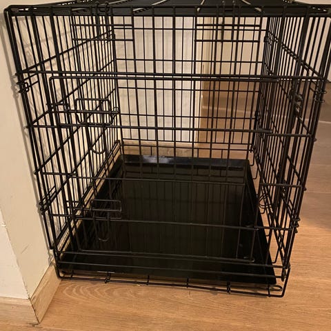 Stålbur til hund med 2 dører. Plastbunn som er lett å rengjøre. Kan slås sammen så det tar lite plass ved feks reising.