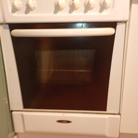 Grepa keramisk komfyr med ovnsdør som åpnes for enkel tilgang til stekeovn. Komfyren har flere brytere for kontroll av kokeplater og ovn.