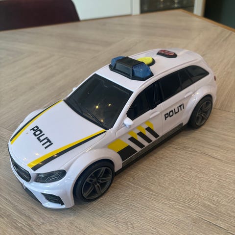 Lignende politibiler/leketøy selges ofte for 20–50 kr brukt.