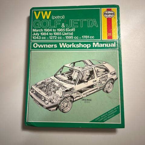 Haynes VW Golf & Jetta Gör-det-själv handbok for modellår 1984 til 1992. Boken inneholder detaljerte instruksjoner for reparasjon og vedlikehold av VW Golf og Jetta, inkludert fullstendig demontering, reparasjon og justering av kjøretøyet.