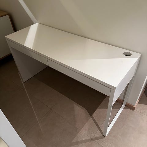 Ganske pent brukt skrivepult fra IKEA av typen Påhl selges rimelig. Er noen mindre bruksmerker her og der men fremstår relativt pen. Følger med hylle som kan stå oppå eller under skrivepulten, men mangler fester til å feste hyllen til pulten (vi har bare hatt den stående løst oppå uten at det har vært noe problem)☺️ Tror pulten kan justeres i tre høyder, men den står nå montert i en høyde på 66 cm. Pent brukt kontorstol selges separat.