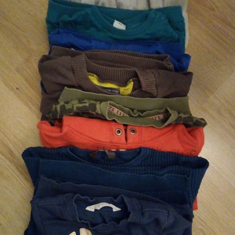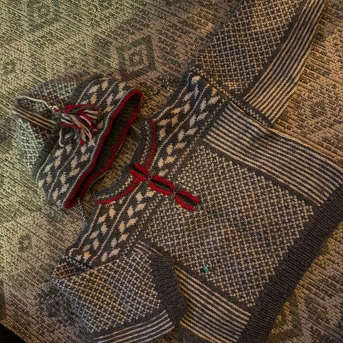 2 stk. hjemmestrikkede gensere i ull. Str. 86. Samlet pris 250 kr.