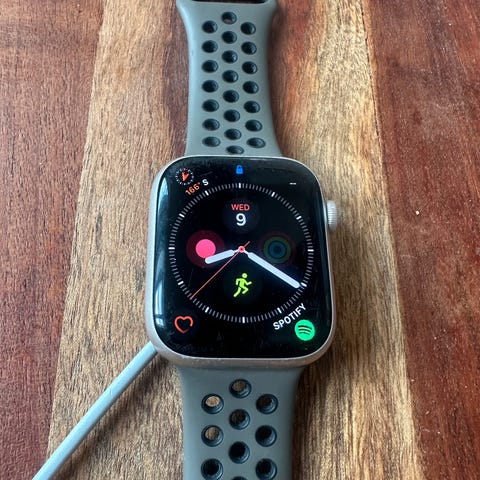 Selger en brukt Apple Watch Series 7 Smartklokke med GPS + Cellular og urkasse i 41mm. Følger med 3 reimer og usb-c lader.