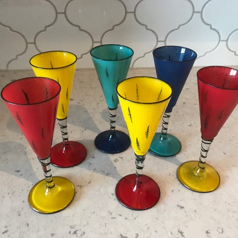 Pene lite brukt cocktail’s glass. 2 stykk. Farge blå/gul og grønn/blå.