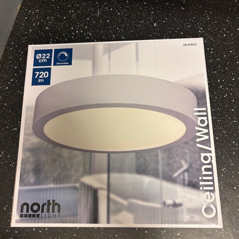 Selger en dimbar plafond 45 cm. Fungerer like godt som både taklampe og vegglampe. Kjøpt på Clas Ohlson.