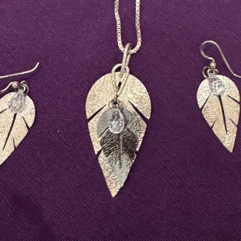 Selger et par øredobber i sølv fra Hasla. De heter Primeval Forest Silver Earrings. Utgått produkt. Har ikke original Hasla-eske, men en annen smykke-eske følger med.