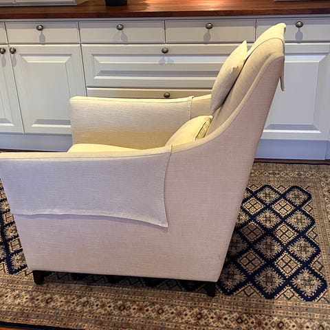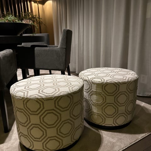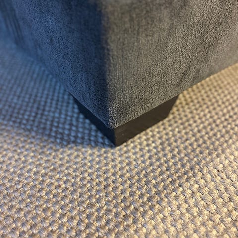 Pallen er kun brukt til styling og fremstår i god stand. Vakkert stripete velourtekstil og med lekre detaljer som sorte nagler langs kanten nede. Pallen passer perfekt i en smal gang, på et bad eller i en garderobe.