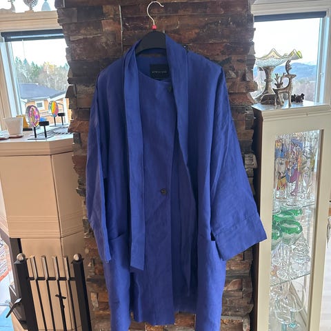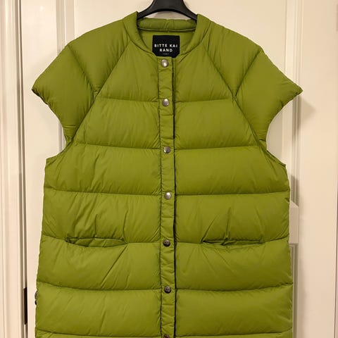 Bitte Kai Rand kåpe i størrelse XL for dame. Kåpen er svart og laget av ull med for i bomull. Kåpen har knappelukking foran og knappedetaljer på ermene.