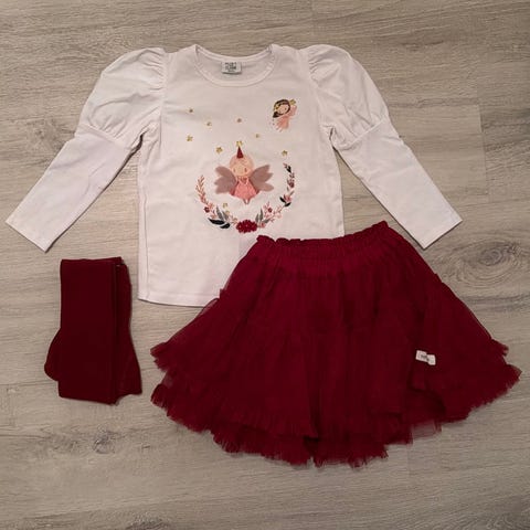 Nydeligste kjolen fra Patachou i ste 110. Aldri brukt da den brått ble for liten. Kjolen er i et tykt deilig stoff.