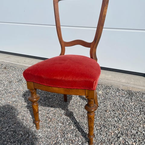Morsom, gammel stol med masse sjarm og patina. Solid og stødig. Usikker på alder.