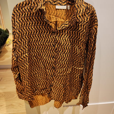Jakke i størrelse M for dame. Jakken er laget av bomull og har en brun leopardmønstret farge.