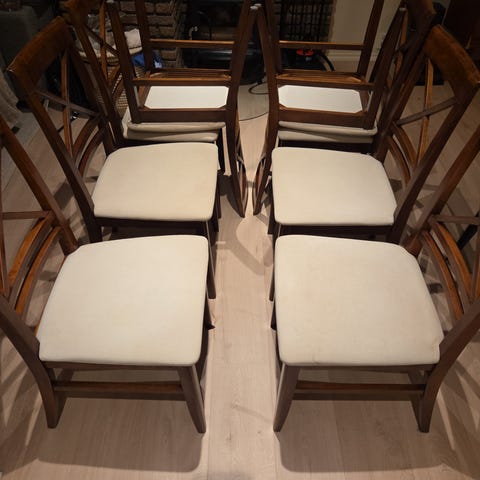 Spisestue av eik med 6 stoler og 2 sjenker