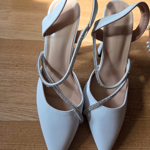 Høyhelte sko i hvit. Brukt en gang i bryllup.