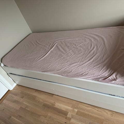 Jeg selger en brukt seng, omtrent et år gammel. Jeg kjøpte den på Ikea. Jeg har en madrass, hvis du vil, i god stand.
